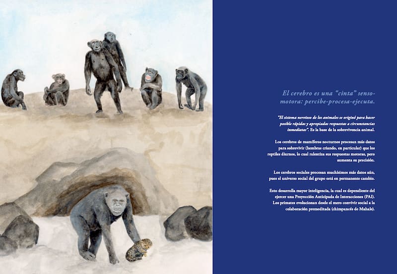 El mensaje que más quiero transmitir tiene que ver con la evolución del cerebro mamífero, que surge antes del cerebro primate y del humano. Éste tiene una condición fundamental que es transmitir un aprendizaje de una generación a otra. Esto no lo hacen los reptiles, por ejemplo, porque no tienen un sistema nervioso plástico.