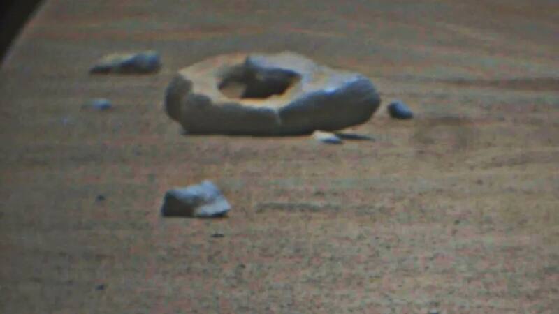 Pero el descubrimiento de Perseverance no es la primera roca con forma de rosquilla que un robot en Marte ha descubierto. En enero de 2014, el rover Opportunity se topó con una piedra blanca por fuera y roja por dentro, lo que llevó a los miembros del equipo de la misión a compararla con una rosquilla de gelatina.