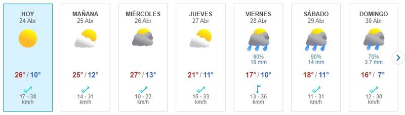 Aún así, explica que el sistema irá extendiendo su accionar hacia la Región Metropolitana a contar del día viernes 28 de abril, con probabilidad de lluvia débil concentradas hacia el sector oriente de la región, es decir, precordillera y cordillera. “Ya entre los días sábado 29 y domingo 30, aumentan esas probabilidades abarcando toda la Región Metropolitana y la zona sur de la Región de Valparaíso”, añade, pero insiste que aún es incierto el volumen de agua que podría caer.