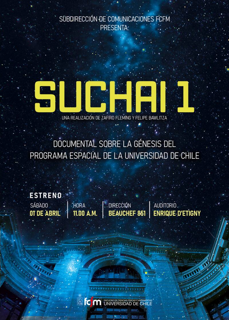 En el marco del aniversario de los tres satélites en el espacio, este sábado 1 de abril a las 11.00 horas en la FCFM (Beauchef 851, metro Parque O’Higgins), se estrenará el documental SUCHAI 1. La pieza audiovisual de 37 minutos, muestra la génesis del Programa Espacial de la Universidad de Chile y constituye una memoria histórica para la ciencia chilena, en la que sus protagonistas comparten las motivaciones, sacrificios y trascendencia que ha tenido el proyecto en términos científicos y vinculación con la ciudadanía.