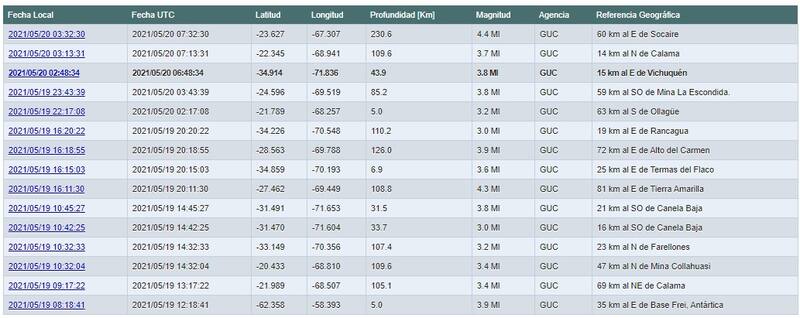 A pesar de la seguidilla de sismos en el norte del país, Gabriel González, geólogo de la Universidad Católica del Norte y subdirector del Centro de Investigación para la Gestión Integrada del Riesgo de Desastres (Cigiden), señala que esta sismicidad es normal, “y se ubica a una profundidad típica para la sismicidad de la zona. Las profundidades son mayores a 45 kilómetros, incluso superiores a 100 km. Eso significa que son sismos profundos, y no sismicidad asociada a la migración de magma bajo los volcanes que debería ocurrir a baja profundidad (menor a 10 km)”.