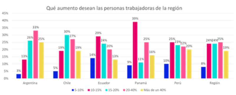 En total en la región, el 25% de las personas optaría por un aumento de entre un 20% y 40%.