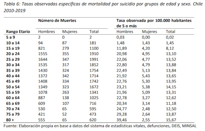 La Organización Panamericana de la Salud indica que el suicidio es la quinta causa más importante de años de vida ajustados por discapacidad en Latinoamérica; y es la tercera causa de muerte entre los jóvenes de 20 a 24 años. Sin dejar de lado que, son las personas de 45 a 59 años quienes tienen la tasa de suicidio más alta de la región, seguidas por las de 70 años o más. Además, la OPS remarca que alrededor del 79% de los suicidios en la Región de las Américas ocurren en hombres. Así como, la tasa de suicidio ajustada por edad entre los varones es tres veces mayor a la de las mujeres.