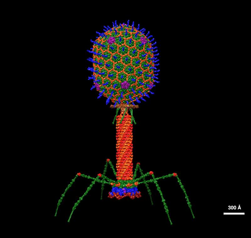 Los bacteriófagos, o fagos para abreviar, controlan las poblaciones bacterianas, tanto en tierra como en el mar. Matan hasta el 40% de las bacterias de los océanos todos los días, lo que ayuda a controlar la proliferación de bacterias y la redistribución de la materia orgánica.