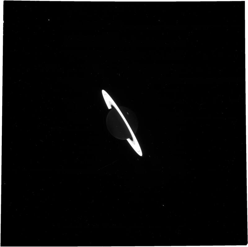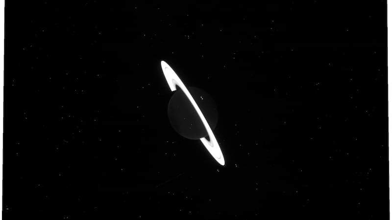 En la imagen a continuación, una de las más destacadas, se muestran los anillos de Saturno brillar intensamente y el planeta casi en negro a punto de mimetizarse con el espacio. Aunque el planeta y sus anillos brillan en longitudes de onda infrarrojas e infrarrojas cercanas, el rango de longitudes de onda es diferente.