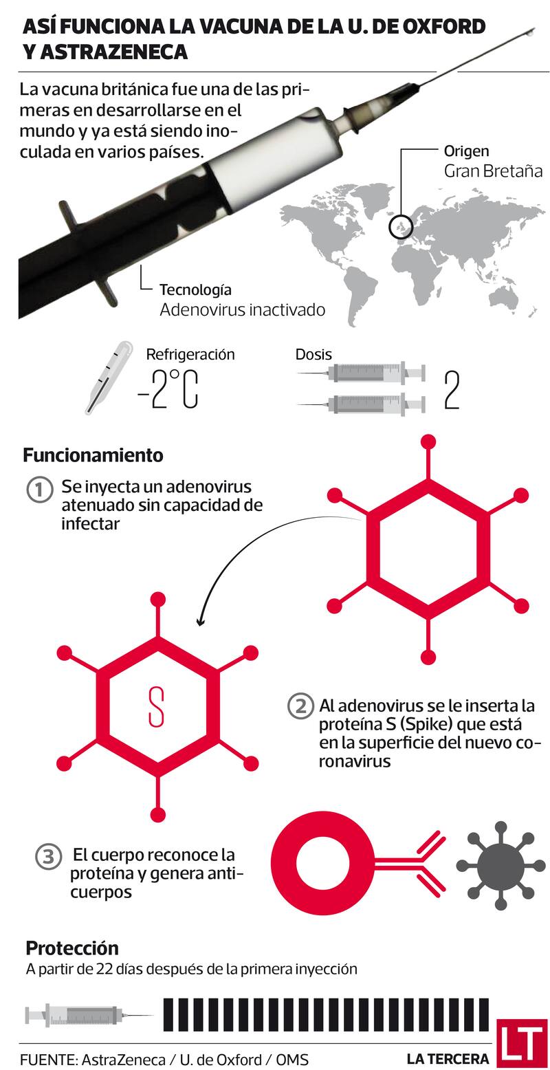 Este miércoles y por unanimidad, la vacuna de la Universidad de Oxford y la empresa AstraZeneca se convirtió, tras Pfizer/BioNTech y Sinovac, en la tercera en ser aprobada por el Instituto de Salud Pública (ISP) para ser administrada en Chile.
