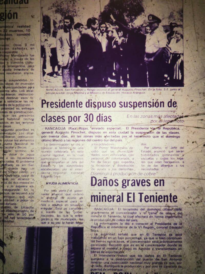 Anteriormente en 1985 para el terremoto del 3 de marzo, uno de los eventos sísmicos más intensos de la historia reciente (8,0 en escala Richter), que se sintió entre la región de Antofagasta y la región de Los Lagos, y que alcanzó mayor violencia en la zona central, las clases se suspendieron temporalmente. El lunes 4 de marzo era la fecha en que volvían los escolares. Pero el terremoto cambió los planes. Se postergó por un mes el inicio de clases y en establecimientos que resultaron con daños estructurales fue por meses.