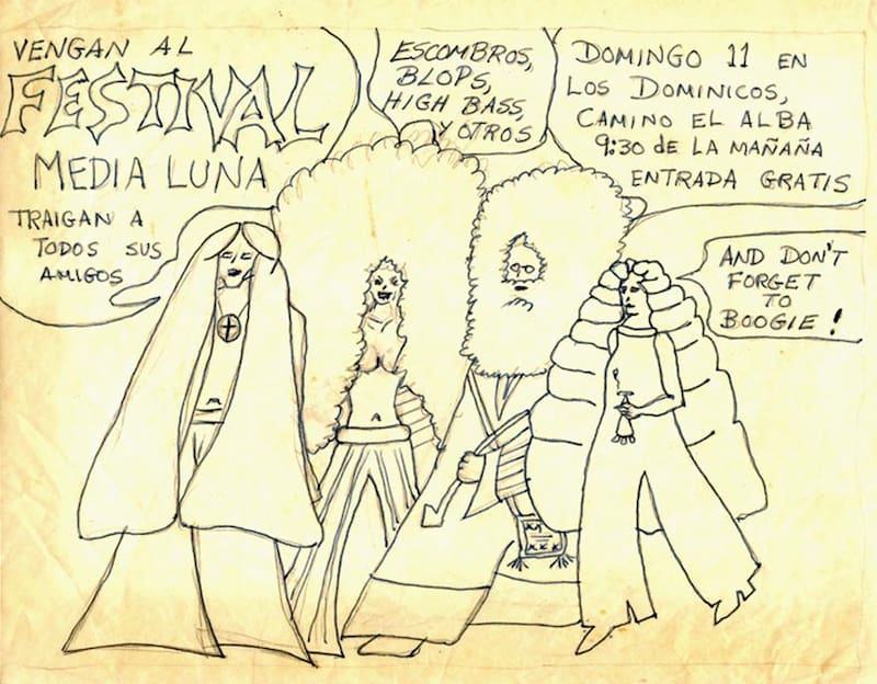 “Nos invitaron a un festival al aire libre en Los Dominicos. Luego de un buen rato, llegamos pasado el mediodía a una parcela con harto alambre púa, harta gente por varios lados y un cuadrado de pasto más grande donde estaban todos en el suelo”, recuerda Julio Villalobos de Los Blops.