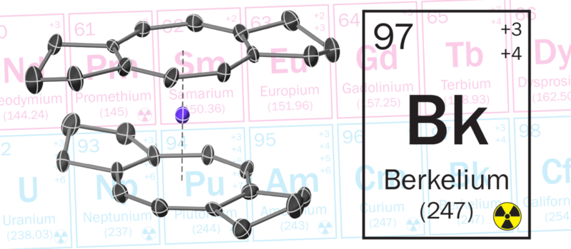 Las moléculas organometálicas, que consisten en un ion metálico rodeado de una estructura basada en carbono, son relativamente comunes para los primeros elementos actínidos como el uranio (número atómico 92), pero son poco conocidas para los actínidos posteriores como el berkelio (número atómico 97).
