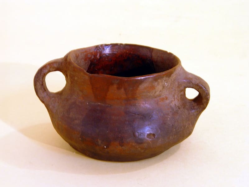 Cuando era niño mis padres aún no contaban con un espacio así, pero sí la casa de mis abuelos. Un escritorio de madera, una maquina de escribir, cajones llenos de objetos que mi abuelo, cartógrafo, usó en sus años de trabajo; murallas llenas de diplomas de mi madre y sus siete hermanos y, allá arriba, encima de un estante y fuera de mis posibilidades, por mi corta estatura de niño, una mediana vasija de fuerte color rojizo con unas membranas metálicas que sostenían pequeños adornos y que mis tíos la llamaban “lo de las monjas chilenas”.