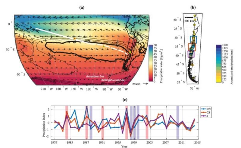La investigación sostiene que la variabilidad interanual de las precipitaciones en el centro de Chile ha sido asociada durante mucho tiempo con cambios en la dinámica atmosférica seca del Pacífico Sur. Esto se debe a la interacción entre la trayectoria de la tormenta extratropical y las circulaciones anticiclónicas polares establecidas por el modo de teleconexión del Pacífico Sudamericano (PSA), que resulta de cambios en la convección tropical.