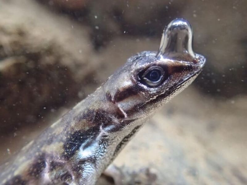 Una foto de un lagarto anolis buceando usando un ingenioso truco para respirar bajo el agua es la subcampeona de esta categoría, que también fue capturada por Lindsey Swierk. La galardonada explicó que “los anolis de agua (Anolis aquaticus) son pequeños lagartos neotropicales que escapan al agua cuando son amenazados por depredadores. “Pueden pasar casi 20 minutos bajo el agua, inhalando y exhalando una burbuja de aire que se adhiere a su hocico. El oxígeno de esta burbuja se agota durante la inmersión bajo el agua, lo que probablemente ayude a los anolis de agua a permanecer bajo el agua durante tanto tiempo”.