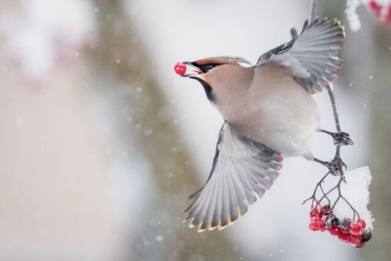 La imagen ganadora de esta categoría, según la publicación, captura bellamente una relación planta-frugívoro, y fue tomada por Alwin Hardenbol, un investigador posdoctoral en la Universidad del Este de Finlandia quien se especializa en ecología forestal y tiene “talento para la fotografía de la naturaleza”. El fotógrafo científico explicó que el ampelis europeo (Bombycilla garrulus) tiene una fuerte relación con los árboles de serbal debido a las bayas que producen. Esta interacción planta-frugívoro es tan fuerte que esta especie de ave migrará en función de la presencia de bayas de serbal. “En los años en que hay muchas bayas de serbal en Finlandia, donde tomé esta foto, el ampelis apena puede migrar. Sin embargo, en otros años, pueden llegar a Europa occidental, oriental y central en grandes cantidades hasta llegar a sus queridas bayas de serbal. Puede comer varios cientos de bayas por día que superan el doble de su propio peso, en gran parte debido a los bajos valores nutricionales de las bayas, con la excepción de los azúcares. Si bien esta relación es muy beneficiosa para la dispersión de semillas, tiene un costo para las aves. A medida que las bayas se vuelven demasiado maduras, comienzan a fermentar y producen etanol que intoxica al ave, lo que les produce problemas, incluso la muerte. Como era de esperar, Waxwings ha evolucionado para tener un hígado relativamente grande para hacer frente a su alcoholismo involuntario”, escribió el ganador de esta categoría.
