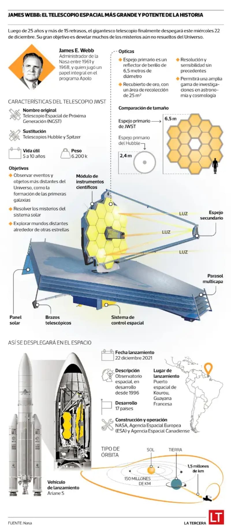 Esta imagen está entre las primeras imágenes a todo color del telescopio. La serie completa se publicará el martes 12 de julio. El telescopio espacial James Webb es el principal observatorio de ciencias espaciales del mundo. Se lanzó hacia el espacio en diciembre de 2021, y se espera que resuelva los misterios de nuestro sistema solar, más allá de mundos distantes alrededor de otras estrellas. Según expresó Bill Nelson, administrador de la NASA, este telescopio espacial “explorará las misteriosas estructuras y los orígenes de nuestro universo y nuestro lugar en él”.