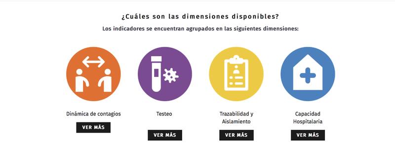 Estas cuatro dimensiones propuestas por los expertos se agrupan en: dinámica de contagios, testeo, trazabilidad y aislamiento, y capacidad hospitalaria. Estos indicadores utilizarán cuatro colores (rojo, naranjo, amarillo y verde), para orientar dónde estamos en relación a los umbrales sugeridos por organismos internacionales y expertos nacionales e internacionales sobre la propagación de la pandemia.