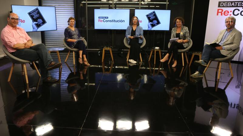 Los candidatos Gonzalo Blumel (distrito 10), Mariana Aylwin (distrito 11), Fernando Atria (distrito 10) y Patricia Politzer (distrito 10), conversan con la editora general de La Tercera, Gloria Faúndez, sobre la distribución del poder político, como parte del ciclo de Debates de Re:Constitución.
