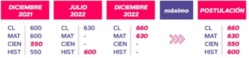 - A partir del proceso de Admisión 2023, para efectos de la ponderación, la postulación se realizará considerando automáticamente el mayor puntaje obtenido en cada una de sus pruebas vigentes individualmente consideradas.
