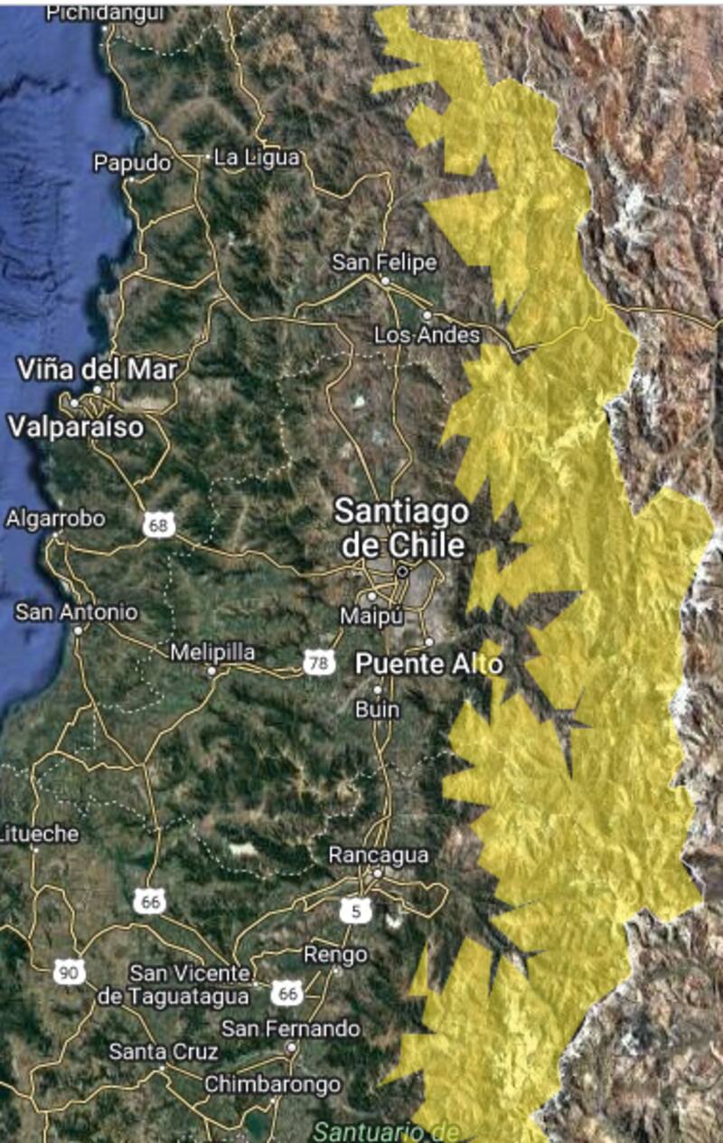 La zona afectada corresponde a los sectores cordilleranos que tendrán asociado también algunos chubascos aislados en estos días que dure el fenómeno meteorológico. Las gotas caerán principalmente entre la tarde y noche del 17 al 20 de octubre.