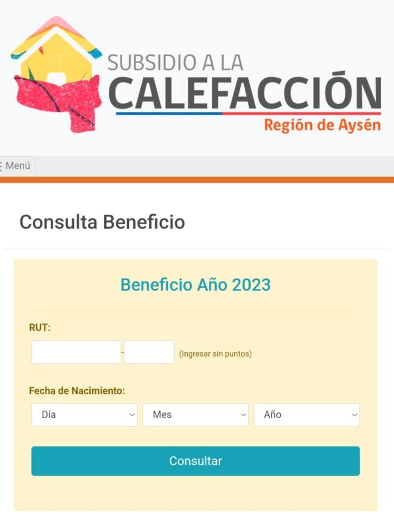 Se puede consultar por el Bono Leña 2023 o Subsidio a la Calefacción en el sitio web ingresando el RUT y la fecha de nacimiento.