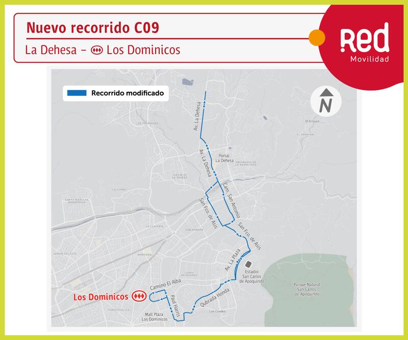 - Recorrido C05: cambiará su trazado desde el sector de La Ermita, en Lo Barnechea, circulando hasta el metro Francisco Bilbao, por Monseñor Escrivá de Balaguer y San José de La Sierra, mientras que al otro sentido hacia La Ermita lo hará por Avenida Las Condes y Monseñor Escrivá de Balaguer.
