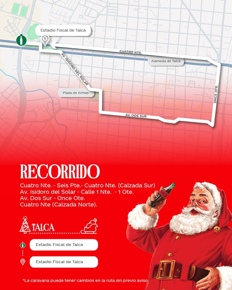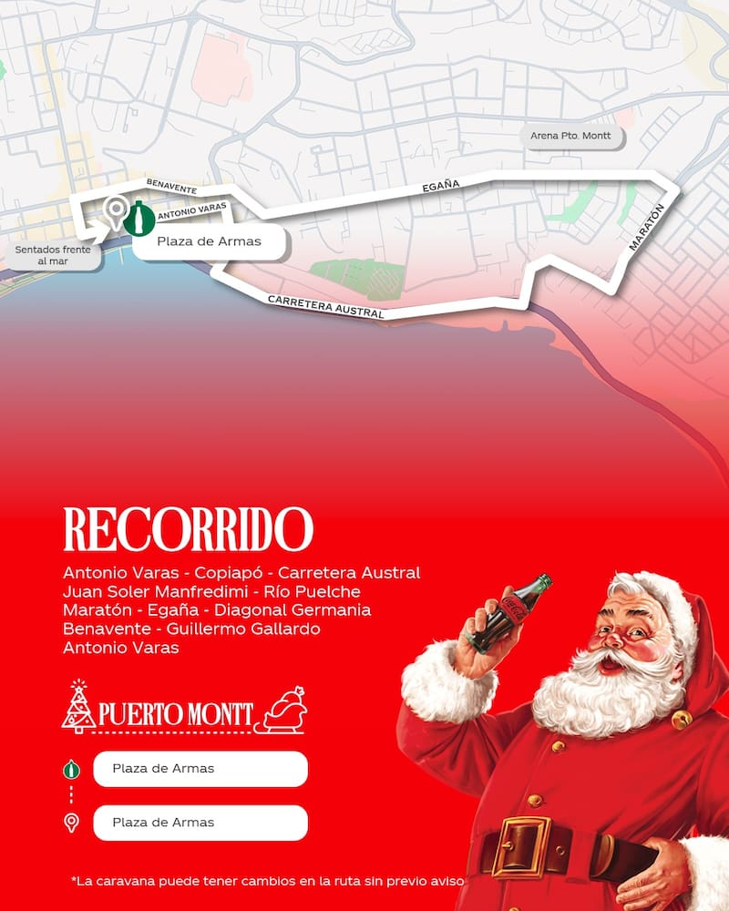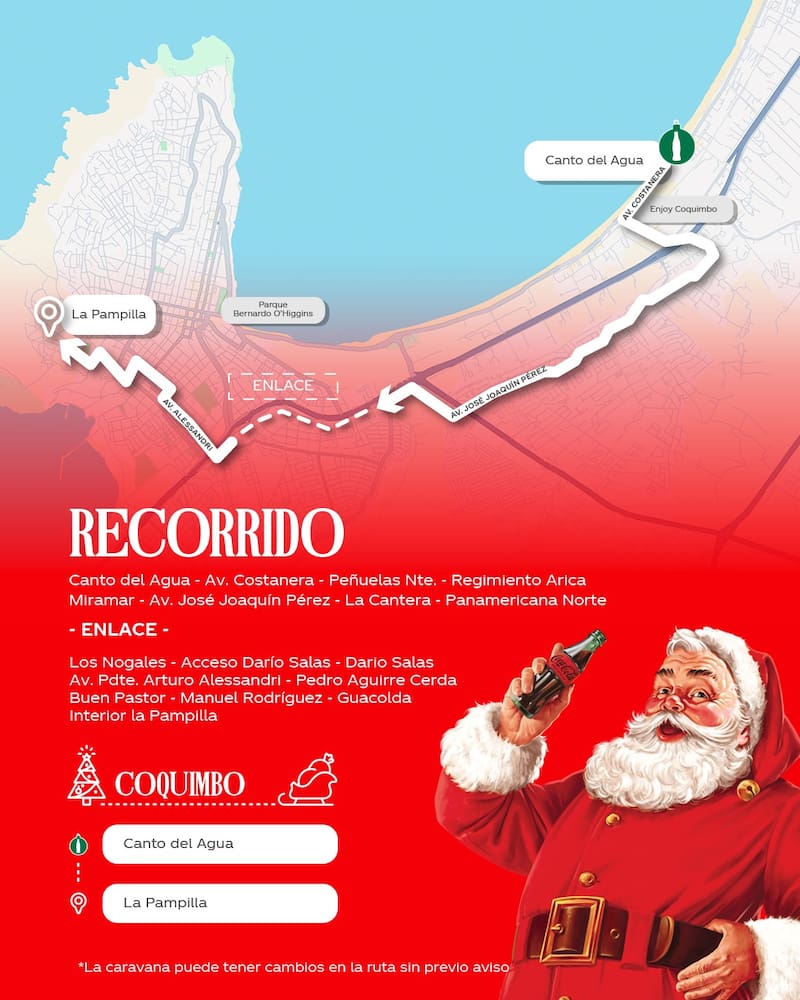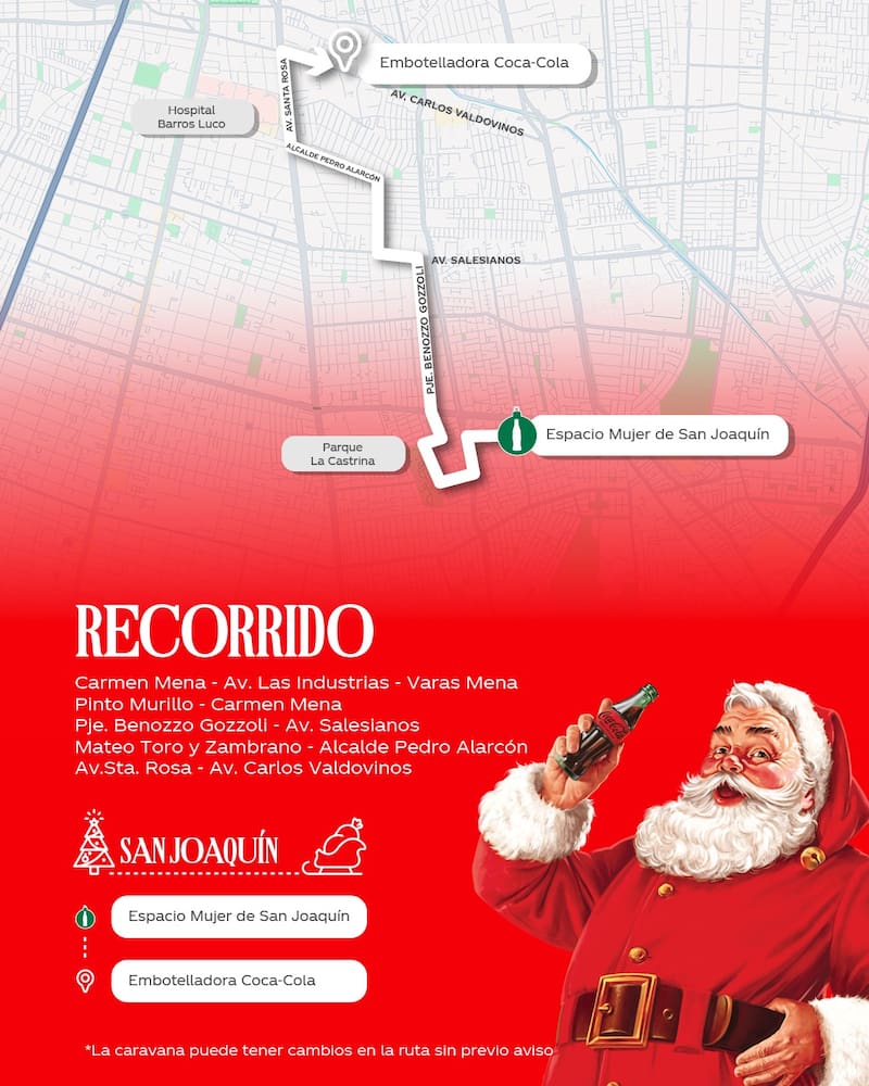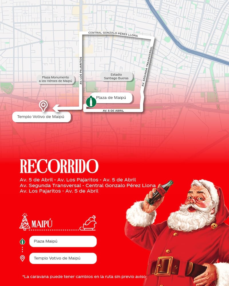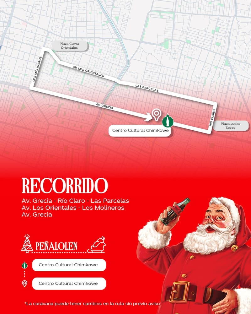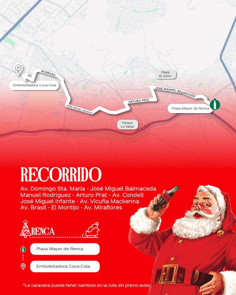 Revisa a continuación los recorridos anunciados por Coca Cola para cada comuna que recibirá la Caravana Navideña.