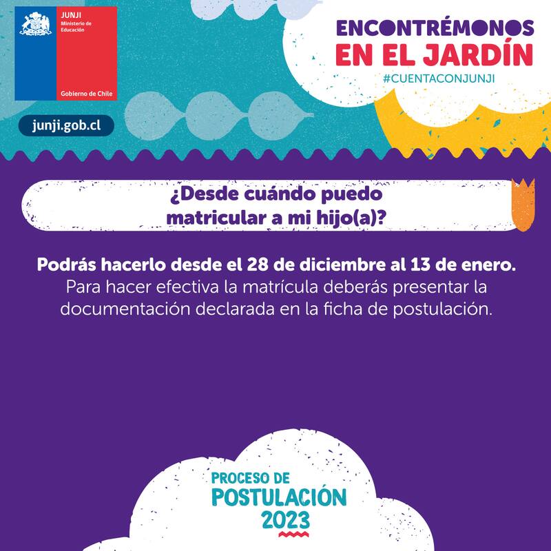 A partir de este 28 de diciembre se pueden realizar las matrículas en jardines infantiles y salas cuna de la Junji, como parte de las inscripciones al proceso 2023.