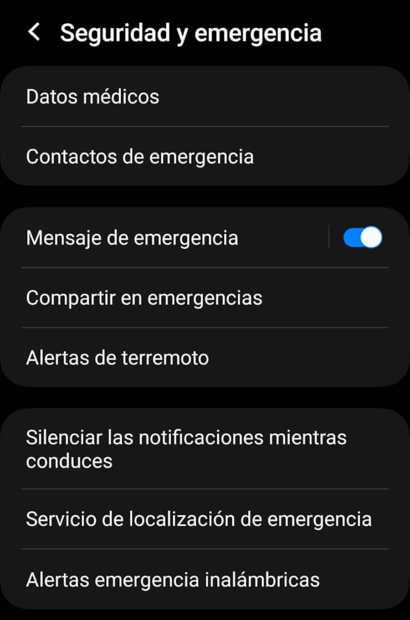 - Hacer clic o buscar la opción “Seguridad y Emergencia”.
