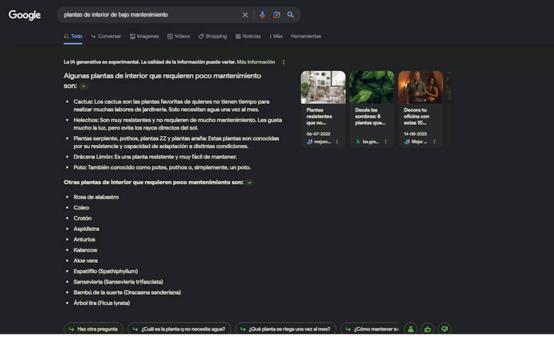 Google ya tiene habilitada en Latinoamérica su nueva herramienta llamada “Experiencia Generativa de Búsqueda” -Search Generative Experience (SGE) en inglés- una inteligencia artificial que es capaz de responder preguntas a través del buscador.