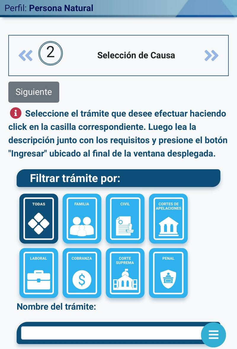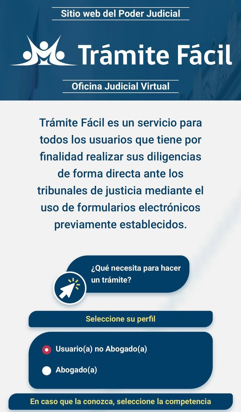 - Ingresar a la página web Trámite fácil del Poder Judicial, que permite seleccionar la opción, de acuerdo a lo que se desee efectuar.