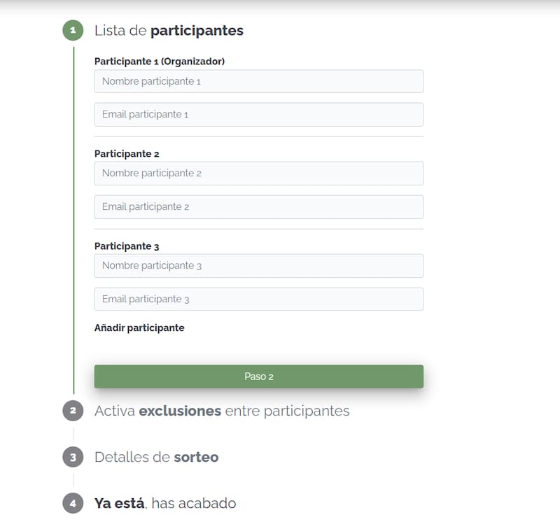 El sitio web permite jugar de forma sencilla al Amigo Secreto. No es necesario registrarse, ya que inmediatamente puedes colocar los nombres y correos de los participantes, además de parámetros para que no algunos no se regalen entre sí. También se pueden personalizar los mensajes que recibirán cada persona en el email.
