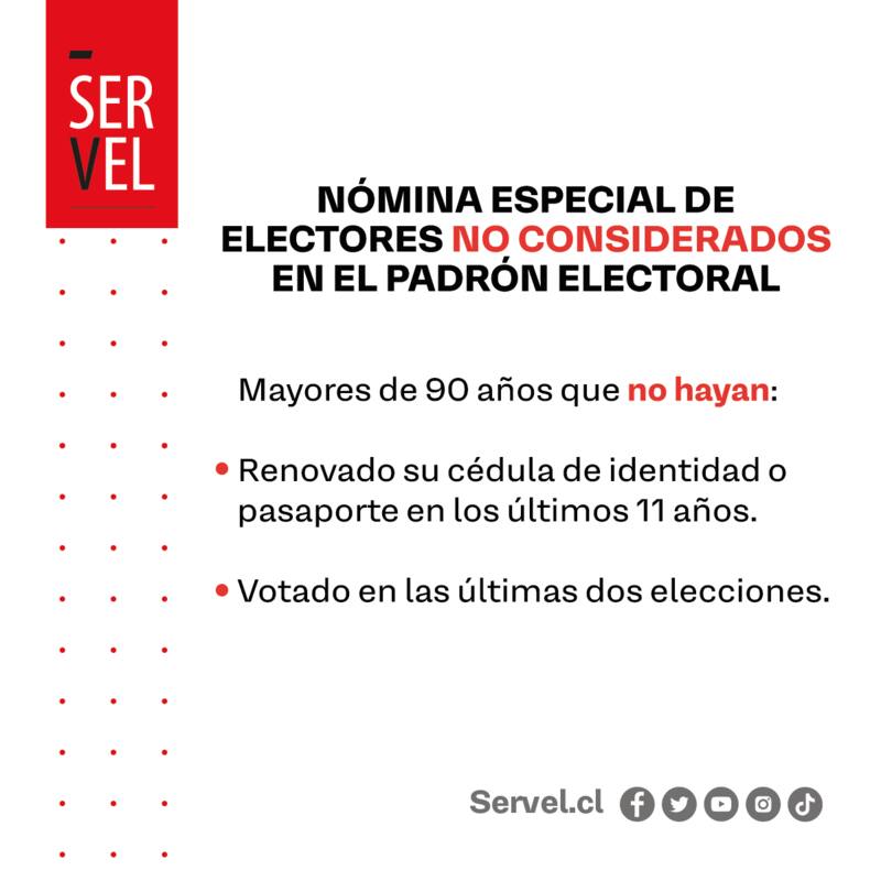 - Además de lo anterior, que no hayan votado en las últimas dos elecciones, según lo informado por el Servel y el Servicio de Registro Civil e Identificación.