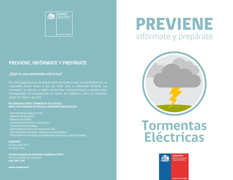 Las tormentas eléctricas están compuestas por descargas bruscas de electricidad atmosférica, es por eso que Senapred, da una serie de recomendaciones de seguridad y resguardo en caso de estar ante una.