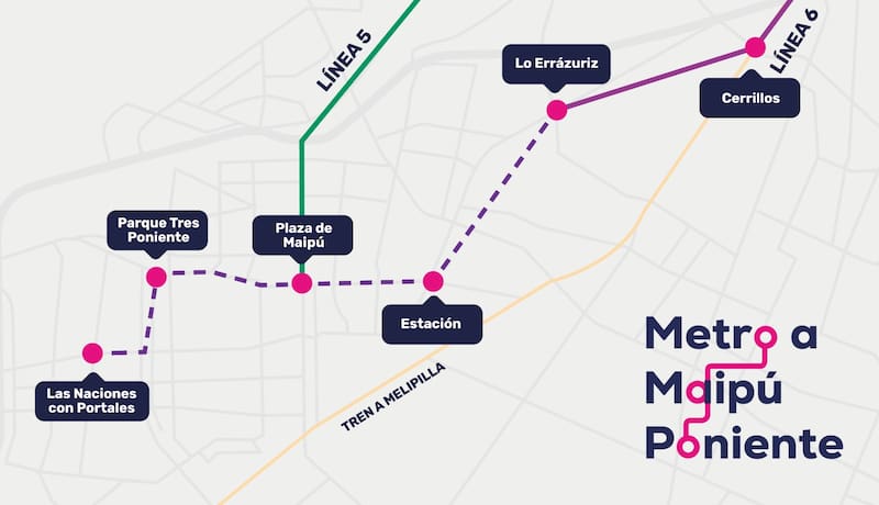 La ampliación del recorrido de la Línea 6 serían con cuatro nuevas estaciones dentro de Maipú, las cuales serían: