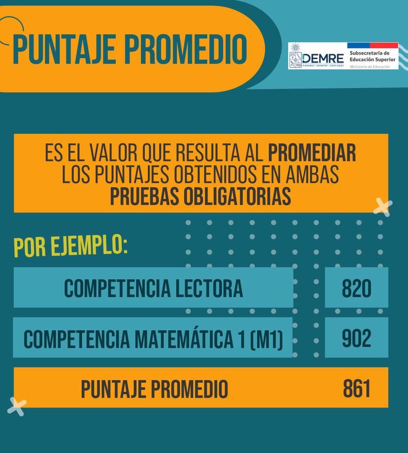 Puntaje Promedio: se trata del valor que resulta al promediar los puntajes obtenidos en ambas pruebas obligatorias.