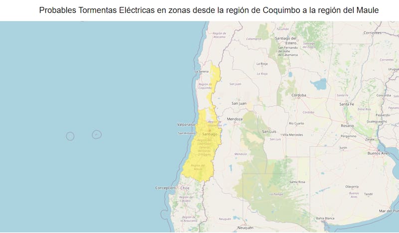 Por Joaquín BarrientosDMC emite aviso meteorológico por probables tormentas eléctricas para cinco regiones de Chile