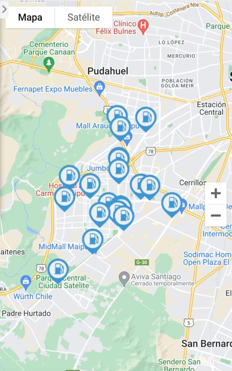 Un Sistema de Información en Línea de Precios de Combustibles, que funciona a través de la georreferenciación por regiones y comunas de los servicentros que operan en el territorio nacional.
