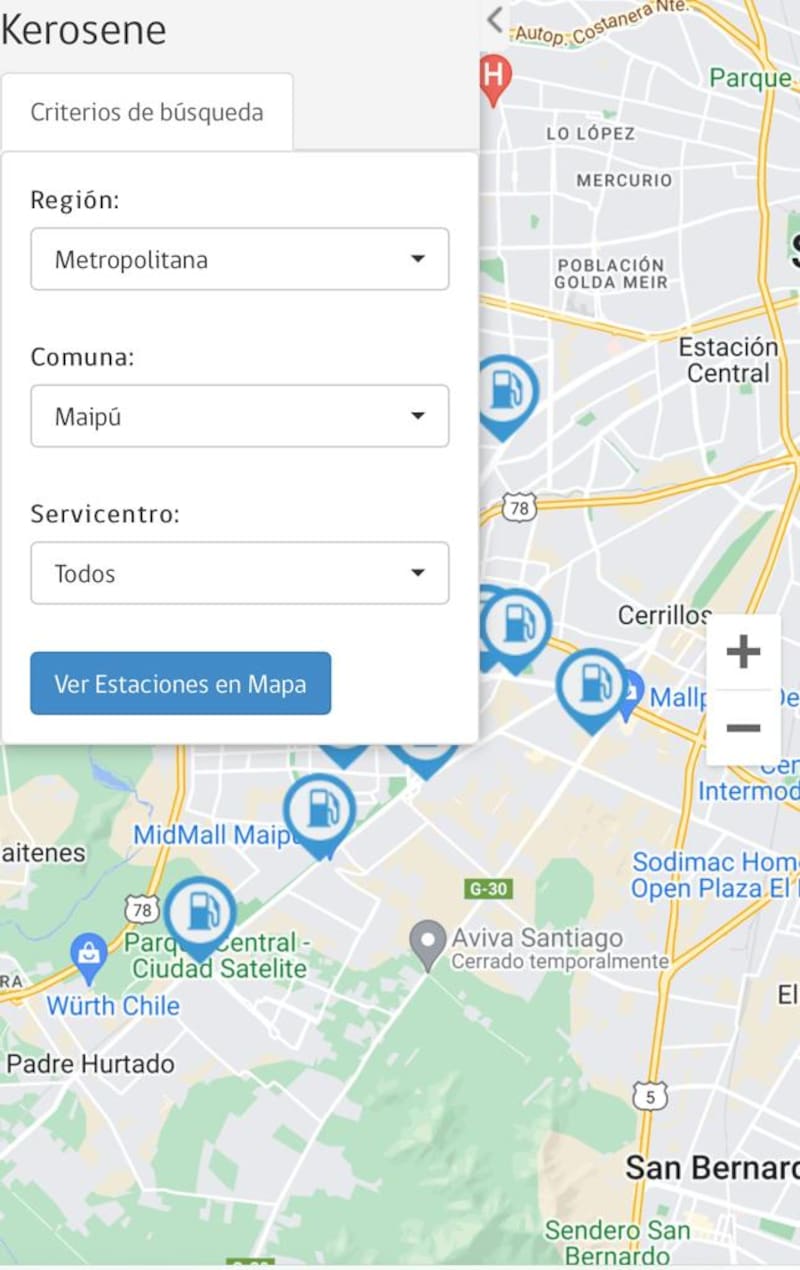 Revisa la plataforma que permite cotizar el precio de kerosene en los diferentes servicentros a lo largo del país.