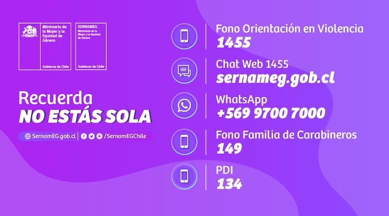 Según la información otorgada por la pagina web del Ministerio de la Mujer, el fono de orientación 1455 es atendido por especialistas en violencia, que entregan información a mujeres que sufren o son testigos de maltrato físico y/o psicológico.