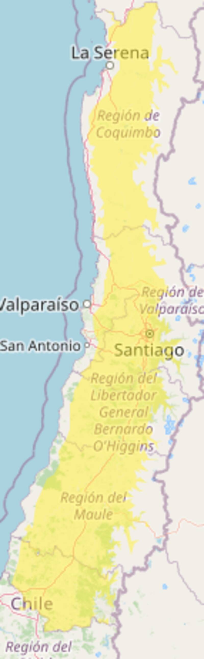 - Cordillera de la costa, Valle y Precordillera de la Región de O’Higgins.