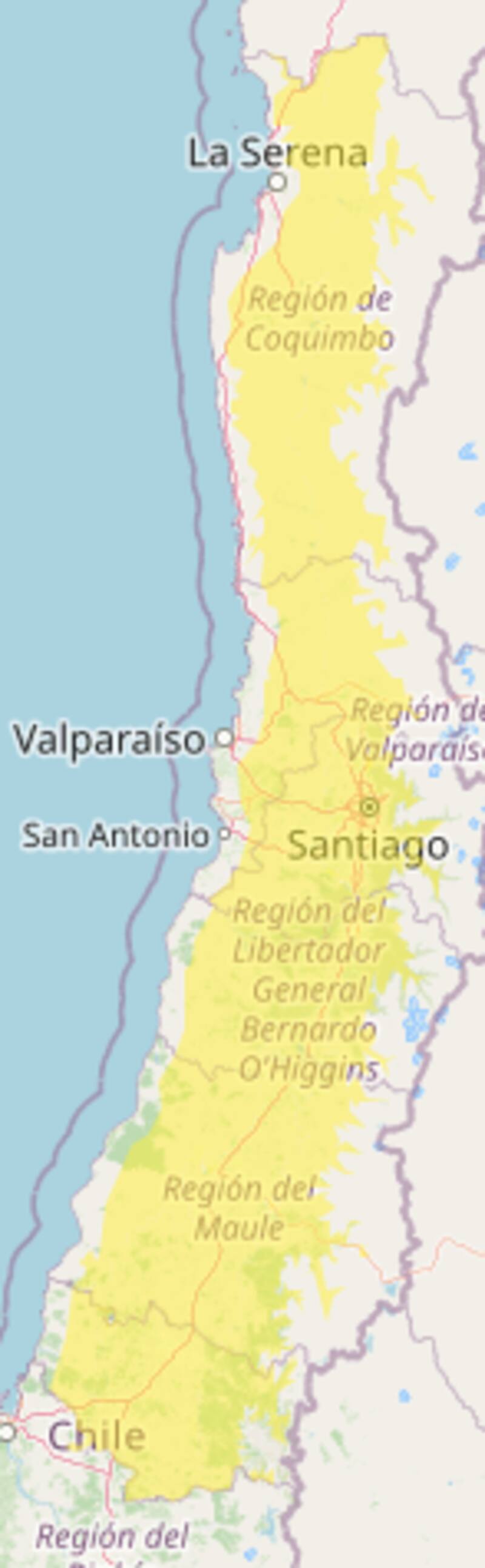 - Cordillera de la costa, Valle y Precordillera de la Región de O’Higgins.