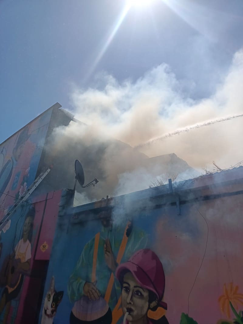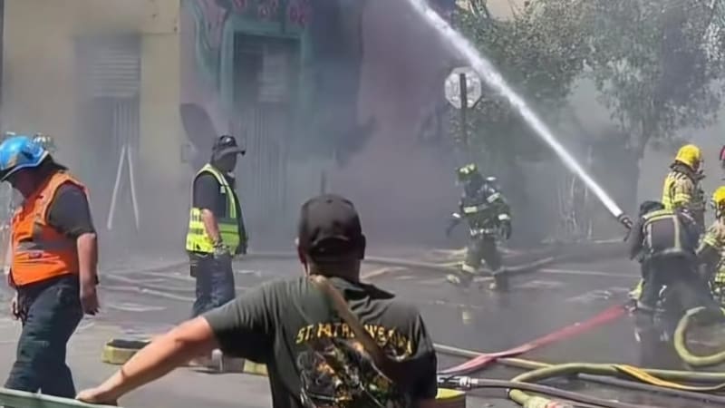 El Cuerpo de Bomberos de Santiago combate un incendio estructural declarado en una propiedad de dos pisos, ubicada en la intersección de Santa Elvira con San Francisco, en la comuna de Santiago.