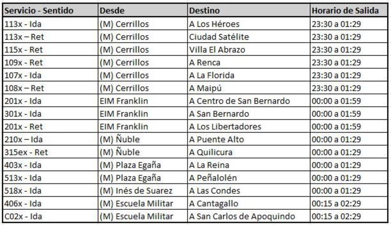 Desde las inmediaciones del Parque y Metro Cerrillos (23:30 a 01:30)