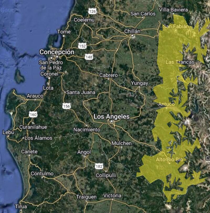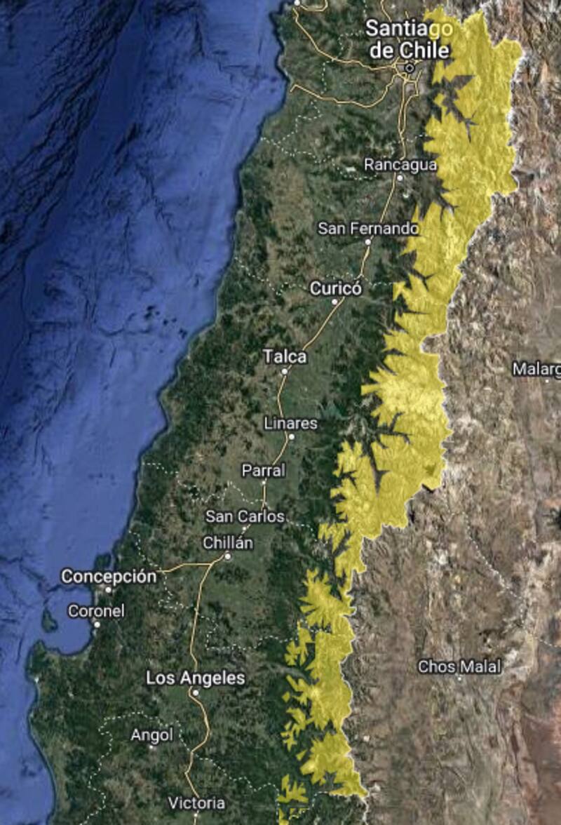 - Región de La Araucanía: cordillera.