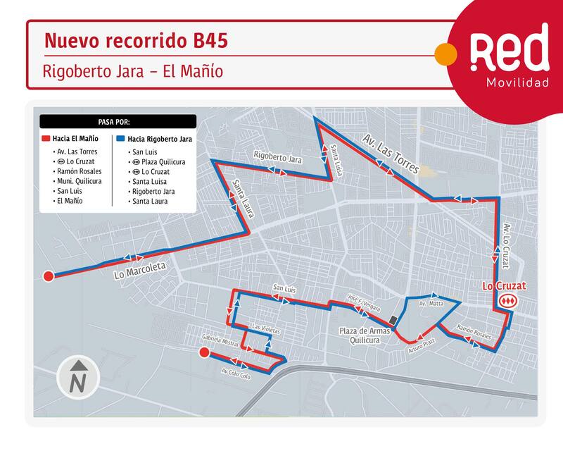 - Hacia Lo Marcoleta: Ramón Rosales, Mall Arauco Quilicura, José Francisco Vergara, San Luis y Población Parinacota.