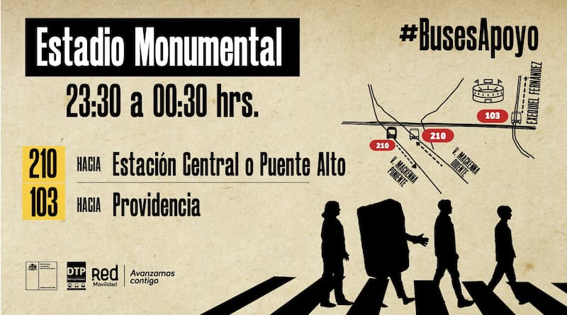 Junto con lo anterior, Red Metropolitana de Movilidad pone a disposición recorridos de buses para apoyar el traslado de los pasajeros, mientras que desde Metro de Santiago también se determinó una extensión horaria para la noche.