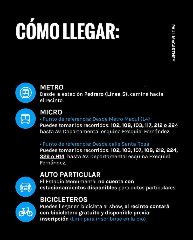 Paul McCartney en Chile: cómo llegar, mapa de accesos, recorridos de buses y horario del metro