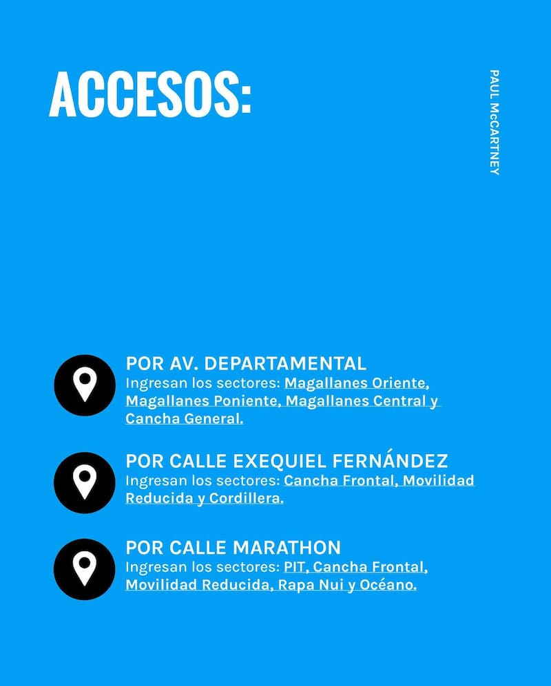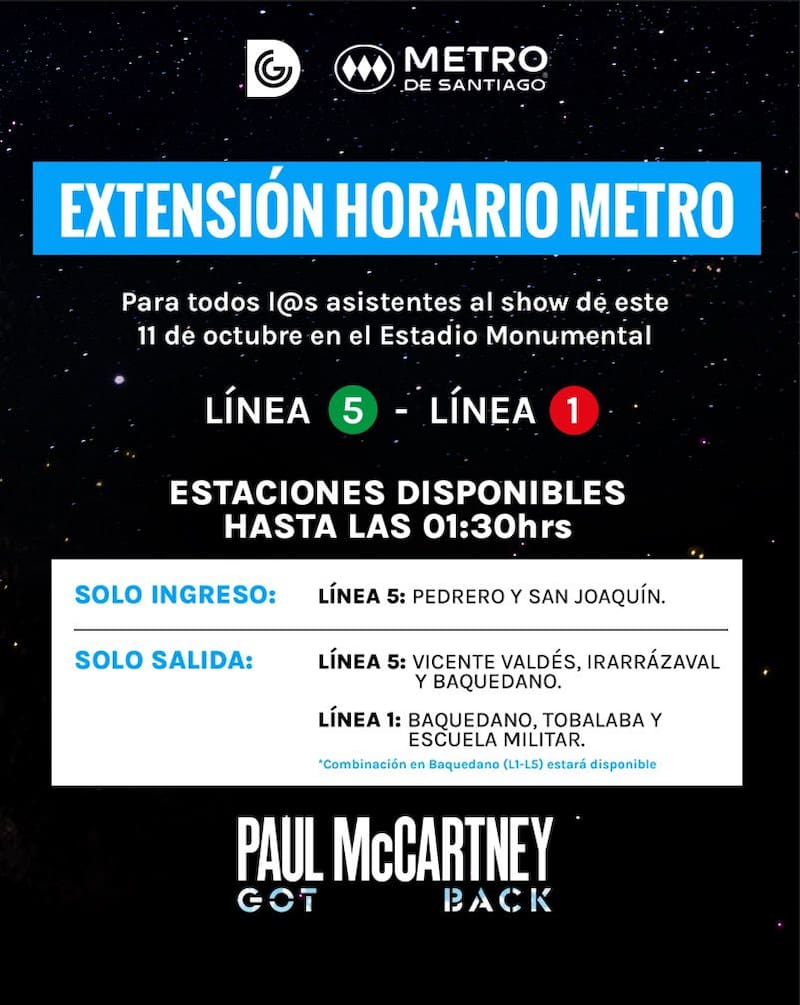 En tanto, el concierto de Paul McCartney comienza a las 21:00 horas, aunque se debe considerar que los horarios pueden estar sujetos a modificación.