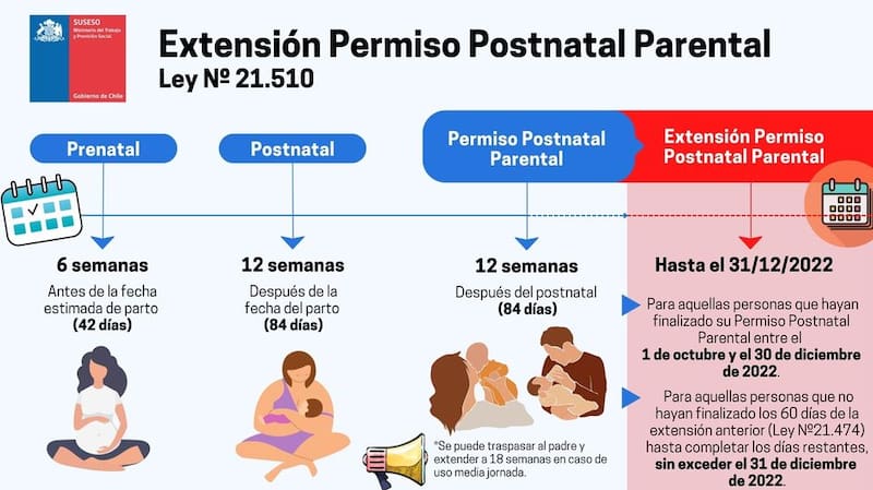 Según la Ley 21.510 se extiende el Permiso Postnatal Parental, (PPP) hasta el 31 de diciembre del 2022 como fecha tope.
