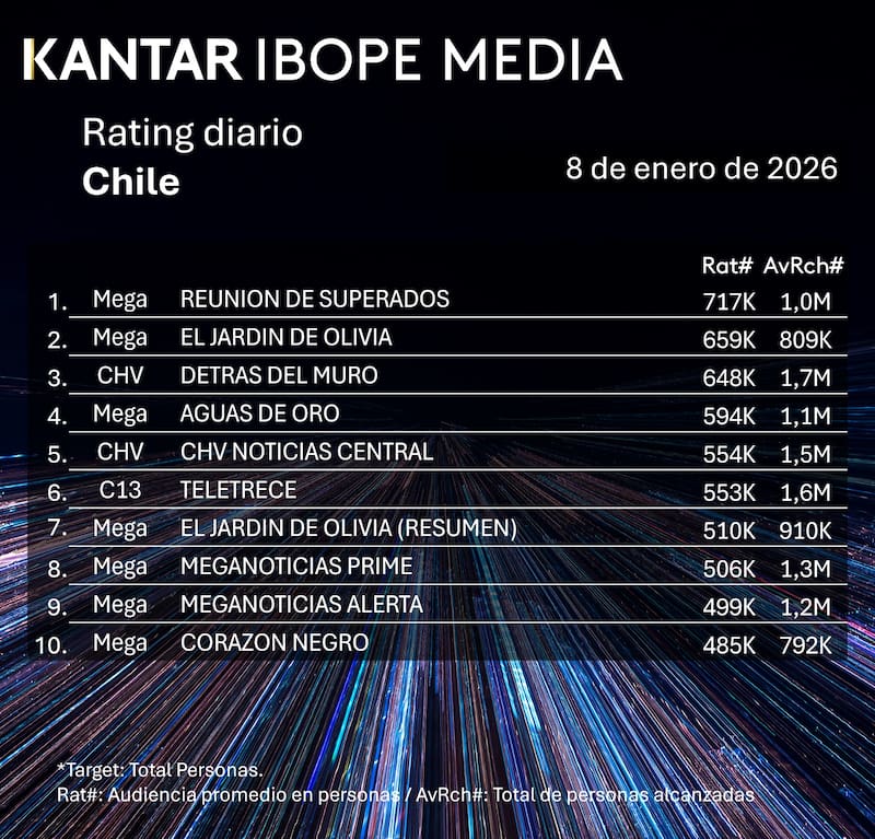 Por Equipo de GrowthRating del jueves 8 de enero en Chile: cómo le fue a CHV, Mega, Canal 13 y TVN