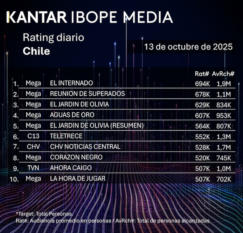Rating del lunes 13 de octubre en Chile: cómo le fue a CHV, Mega, Canal 13 y TVN